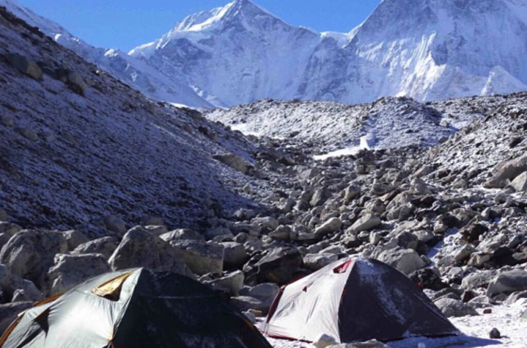 The campsite near the glacier provides an incredible opportunity to witness dramatic Himalayan landscapes.