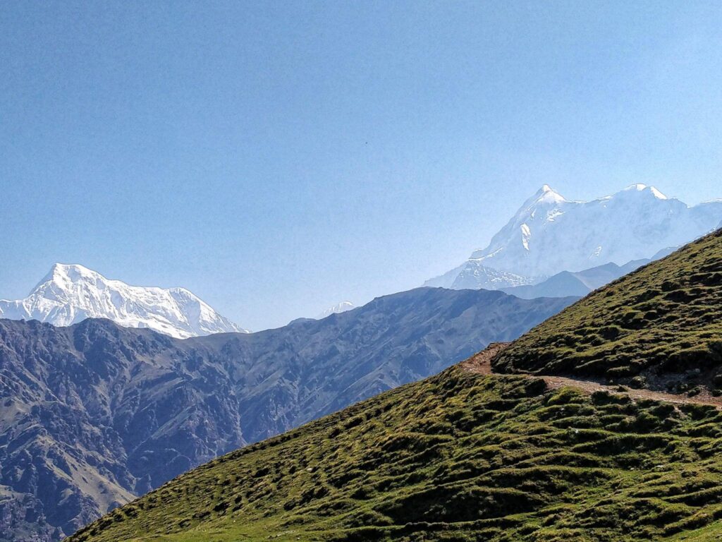 The trail passes through dense oak and rhododendron forests, vast snow-covered meadows, and peaceful mountain ridges. As trekkers gain altitude, they are rewarded with magnificent views of famous Himalayan peaks including Mt. Trishul, Mt. Nanda Ghunti, and Mt. Kamet.