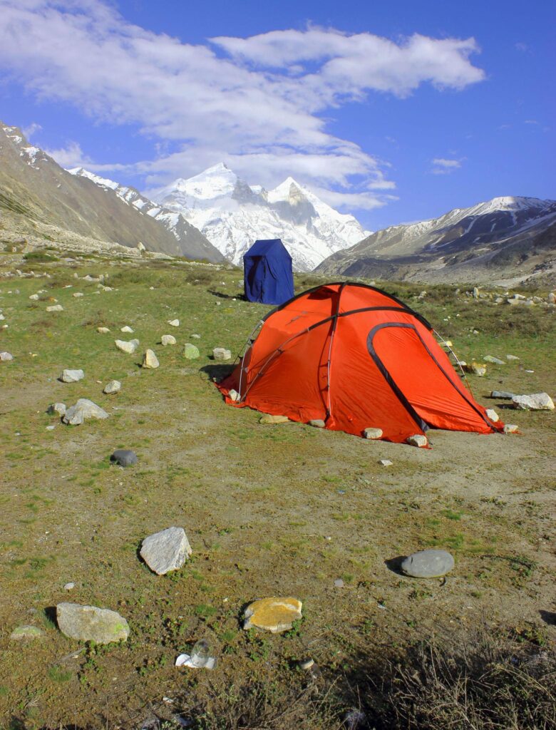 After reaching the summit, trekkers experience an exciting descent through steep snow slopes before reaching the campsite in the valley below.