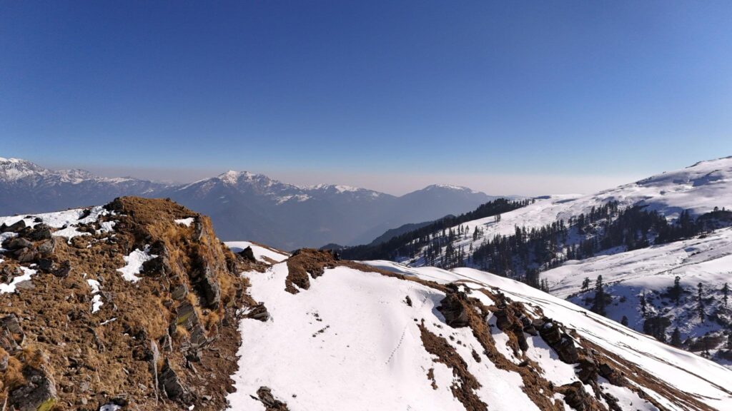 The highlight of the trek is reaching the expansive Dayara Bugyal, a high-altitude meadow that stretches across rolling hills and offers spectacular panoramic views of the surrounding mountains. During winter, the meadow transforms into a beautiful snow-covered landscape, making it a popular destination for snow trekking as well.