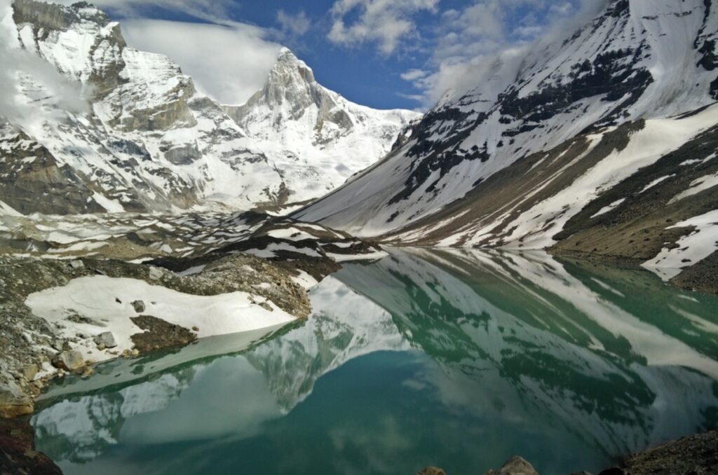 The trail involves a challenging climb over rocky terrain before reaching the stunning glacial lake situated beneath the towering Thalay Sagar Peak. The breathtaking scenery makes this one of the most memorable moments of the trek.
