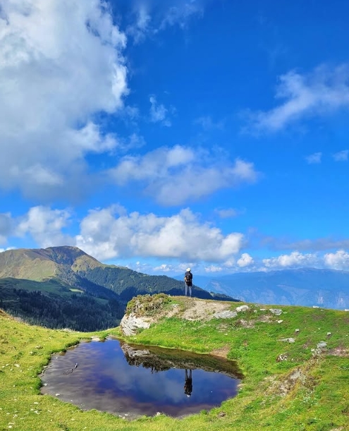 The trek begins with a gradual ascent through dense forests of pine and oak trees. The trail leads to Juda Ka Talab, a beautiful alpine lake surrounded by forests and mountain landscapes.